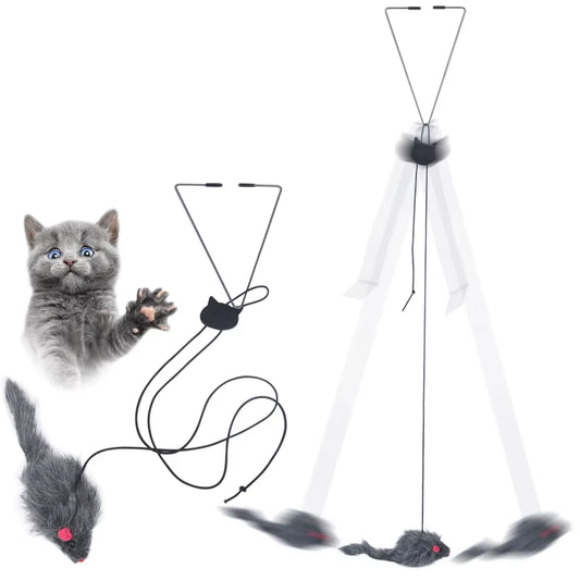 Brinquedo Interativo de Porta para Gatos – Ratinho Suspenso com Elástico